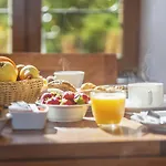 En frukostbuffé serveras på hotellet Residence Kalliste dagligen. Le Temps des Oliviers erbjuder ett urval av rätter, ganska nära det här boendet.